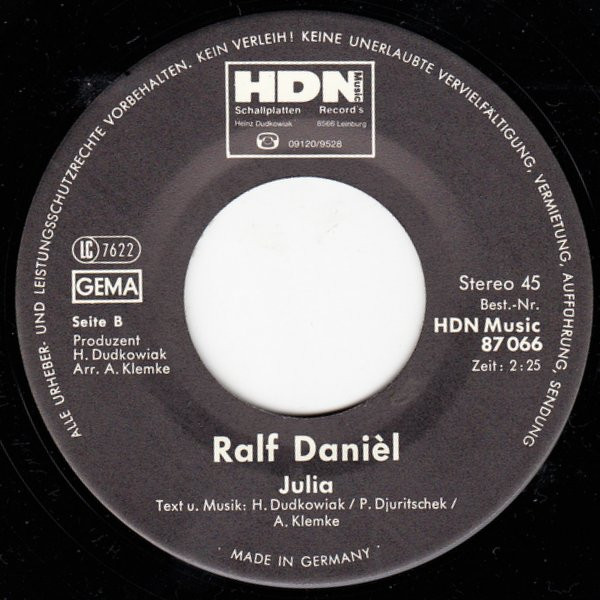Vinyl / Ralf Daniél - Der Weg Ist Zu Ende / Julia