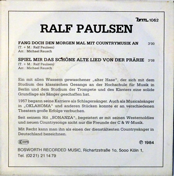 Vinyl / Ralf Paulsen - Fang Doch Den Morgen Mal Mit Countrymusic An