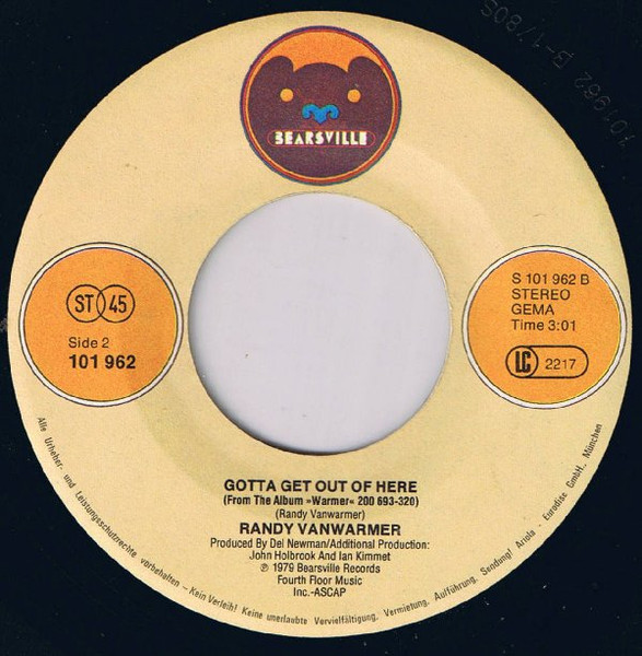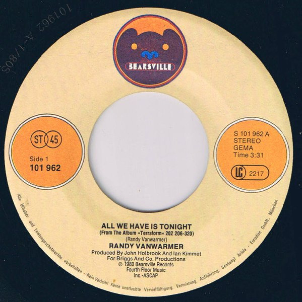 Vinyl / Randy Vanwarmer - All We Have Is Tonight / Gotta Get Out Of Here