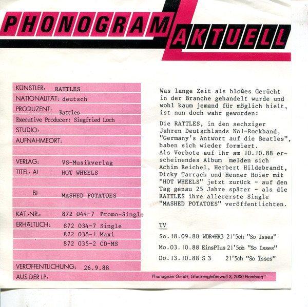 Vinyl / Rattles* - Hot Wheels / Mashed Potatoes