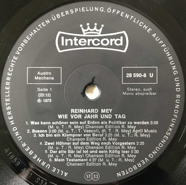 Vinyl / Reinhard Mey - Wie Vor Jahr Und Tag