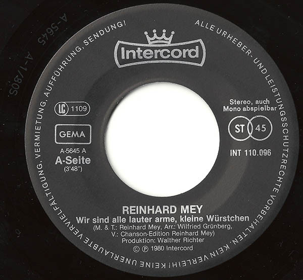 Vinyl / Reinhard Mey - Wir Sind Alle Lauter Arme, Kleine Würstchen
