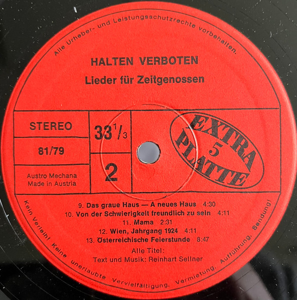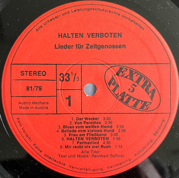Vinyl / Reinhart Sellner - Halten Verboten - Lieder Für Zeitgenossen