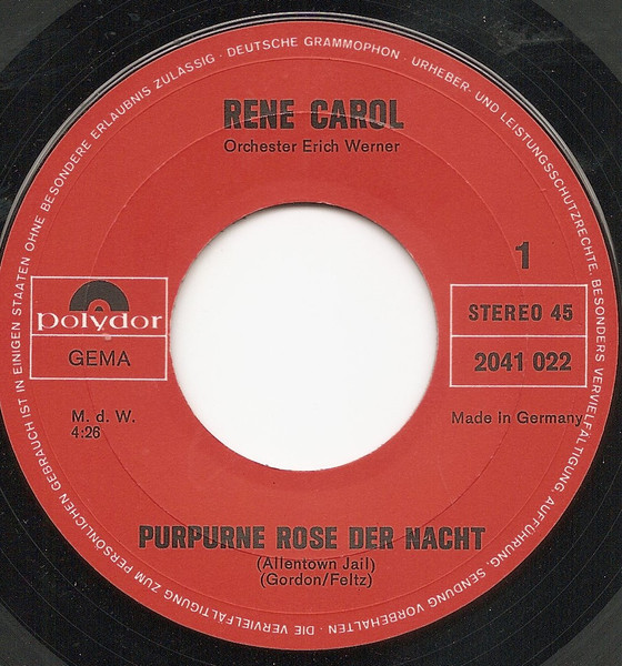Vinyl / Rene Carol* - Purpurne Rose Der Nacht (Allentown Jail)