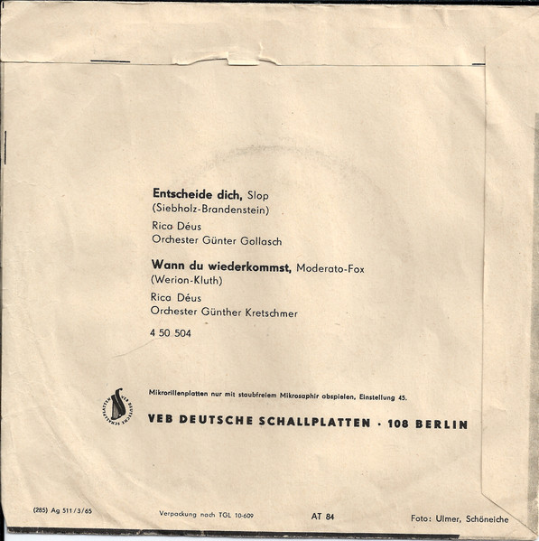 Vinyl / Rica Déus - Entscheide Dich / Wann Du Wiederkommst