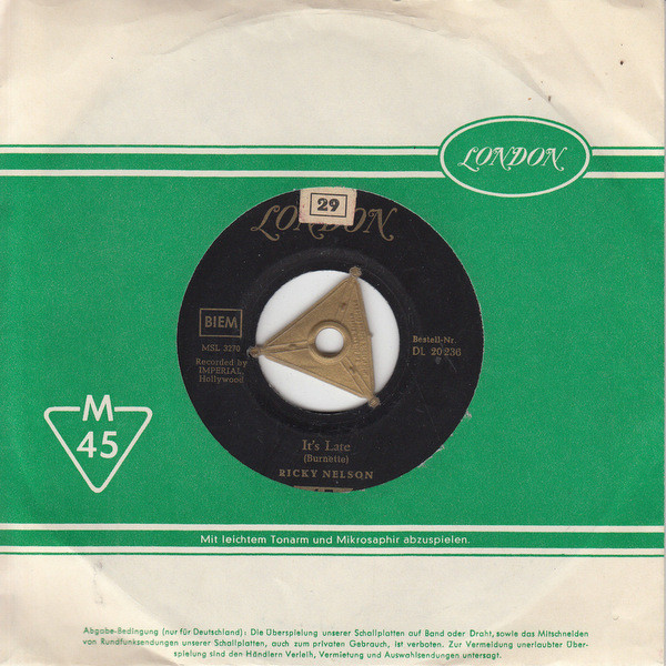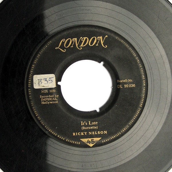 Vinyl / Ricky Nelson (2) - It's Late / Never Be Anyone Else But You