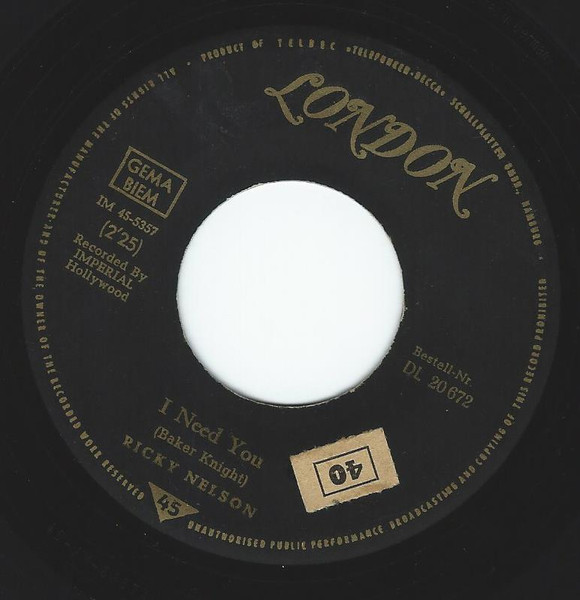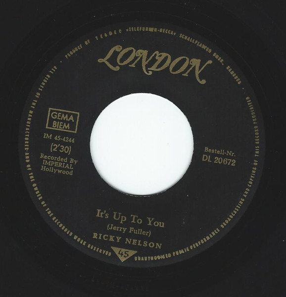 Vinyl / Ricky Nelson (2) - It's Up To You / I Need You