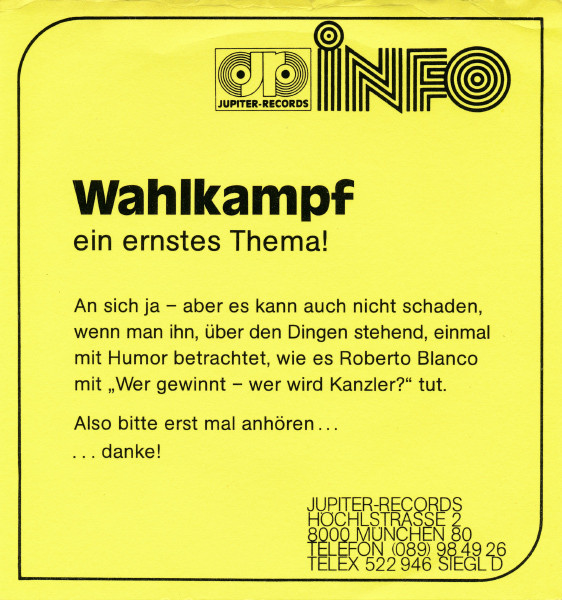Vinyl / Roberto Blanco - Wer Gewinnt - Wer Wird Kanzler?