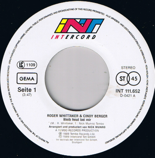Vinyl / Roger Whittaker & Cindy Berger - Bleib Heut Bei Mir
