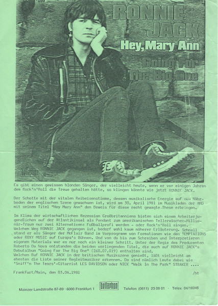 Vinyl / Ronnie Jack - Hey, Mary Ann / Going For The Big One
