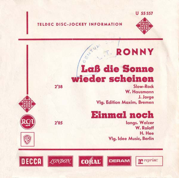 Vinyl / Ronny (4) - Laß Die Sonne Wieder Scheinen / Einmal Noch