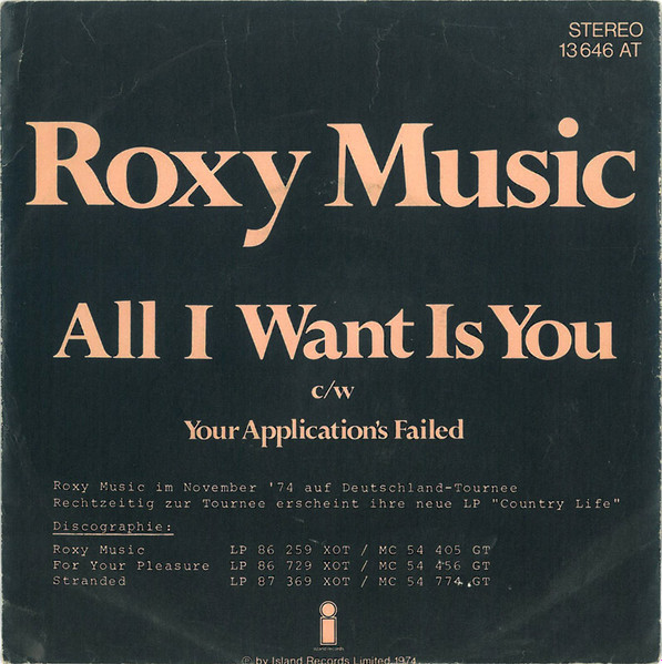 Vinyl / Roxy Music - All I Want Is You