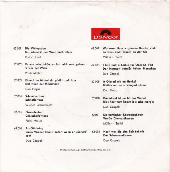 Label: Polydor - Cat#: 62 001