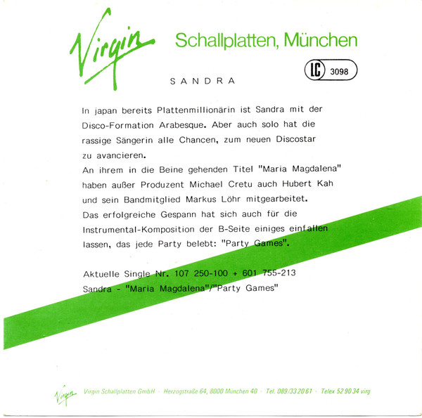 Vinyl / Sandra - (I'll Never Be) Maria Magdalena