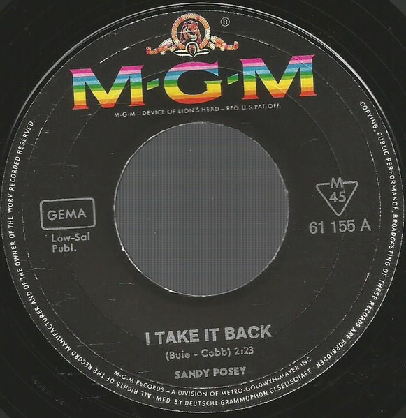 Vinyl / Sandy Posey - I Take It Back / The Boy I Love
