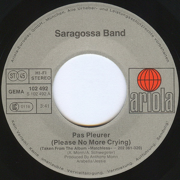 Vinyl / Saragossa Band - Pas Pleurer (Please No More Crying)
