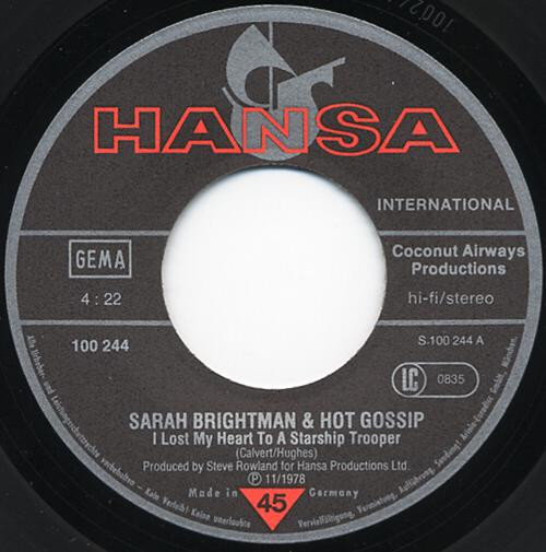 Vinyl / Sarah Brightman & Hot Gossip - I Lost My Heart To A Starship Trooper