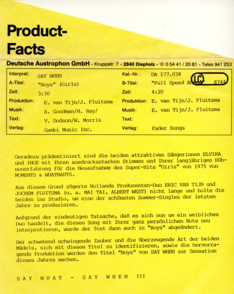 Genre/Style: Electronic, Pop, Europop, Disco