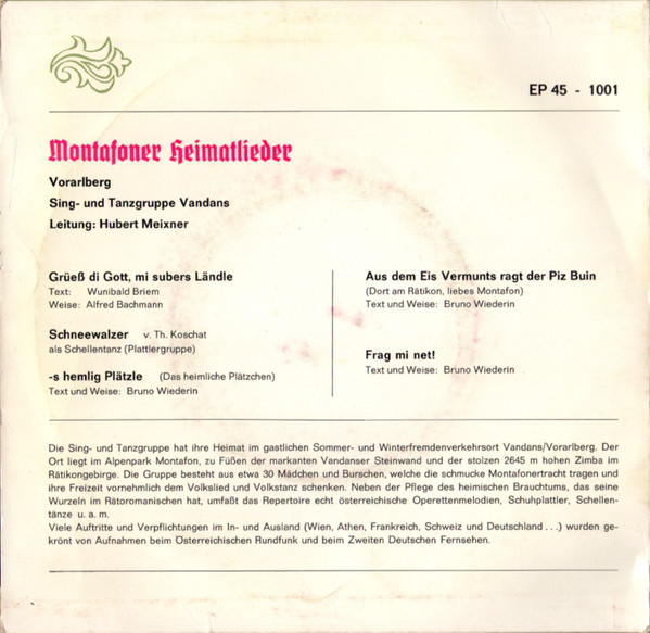 Vinyl / Sing- Und Tanzgruppe Vandans* - Montafoner Heimatlieder