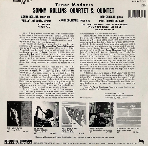 Vinyl / Sonny Rollins Quartet - Tenor Madness