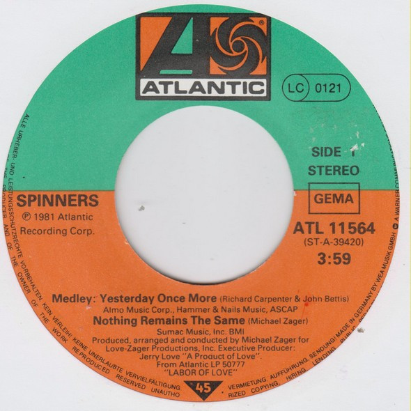 Vinyl / Spinners - (Medley) Yesterday Once More / Nothing Remains The Same / Be My Love