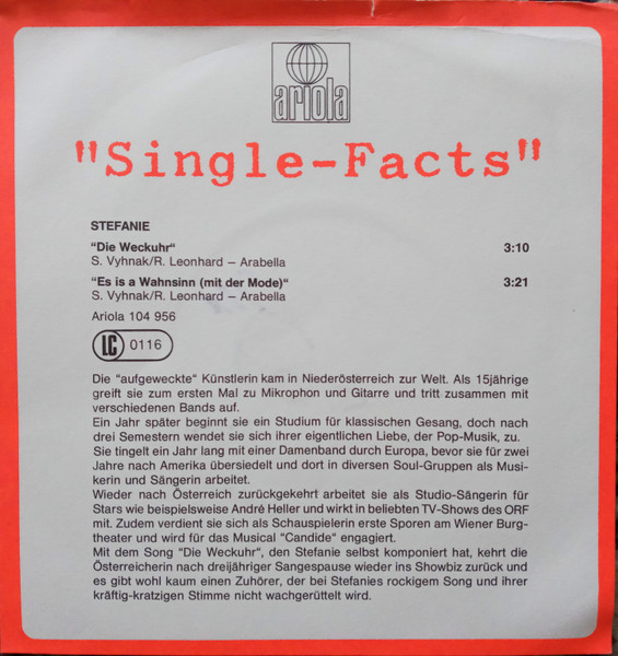 Vinyl / Stefanie* - Die Weckuhr / Es Is A Wahnsinn (Mit Der Mode)