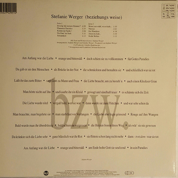 Vinyl / Stefanie Werger - Bzw. (Beziehungsweise)