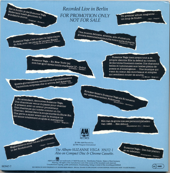 Vinyl / Suzanne Vega - Recorded Live In Berlin