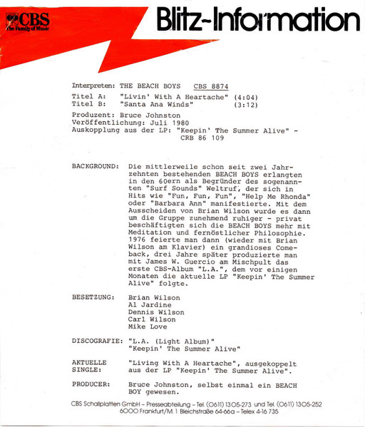 Vinyl / The Beach Boys - Living With A Heartache