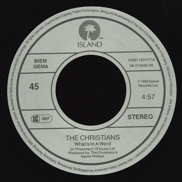 Vinyl / The Christians - What's In A Word