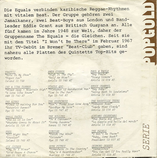 Vinyl / The Equals - I Won't Be There / Baby, Come Back