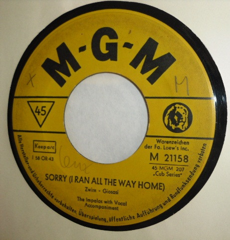 Vinyl / The Impalas - Sorry (I Ran All The Way Home) / Fool, Fool, Fool
