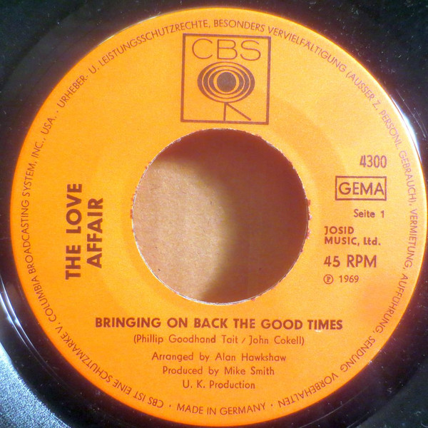 Vinyl / The Love Affair - Bringing On Back The Good Times