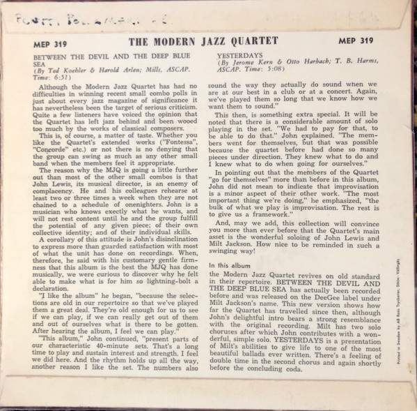 Vinyl / The Modern Jazz Quartet - Between The Devil And The Deep Blue Sea / Yesterdays