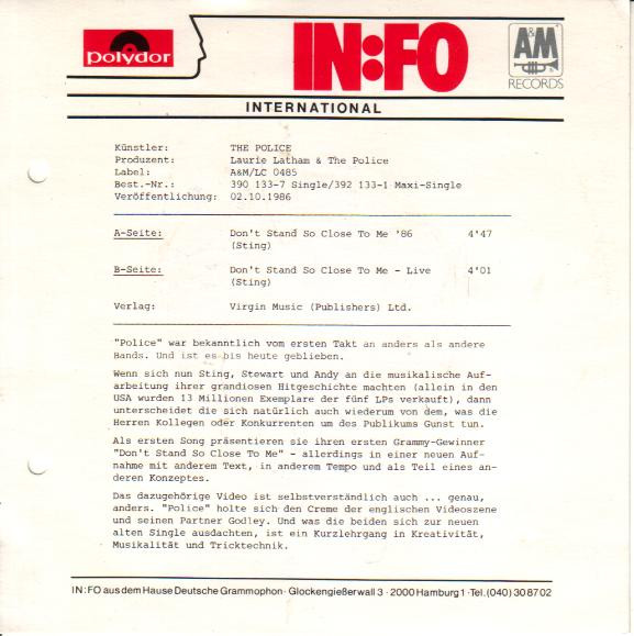 Vinyl / The Police - Don't Stand So Close To Me '86