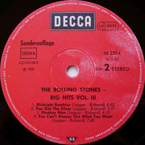 Vinyl / The Rolling Stones - Big Hits Volume 3