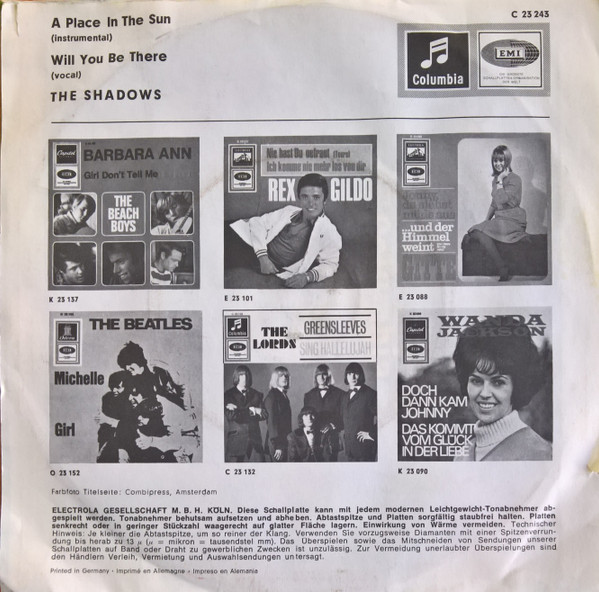 Vinyl / The Shadows - A Place In The Sun / Will You Be There