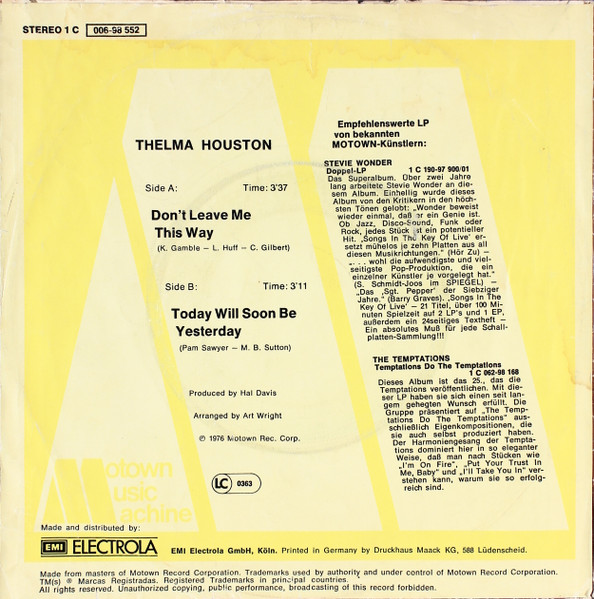 Label: Motown - Cat#: 1 C 006-98 552