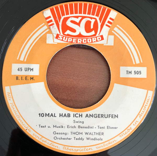 Vinyl / Thom Walther - Ich Hab Sehnsucht / 10mal Hab Ich Angerufen