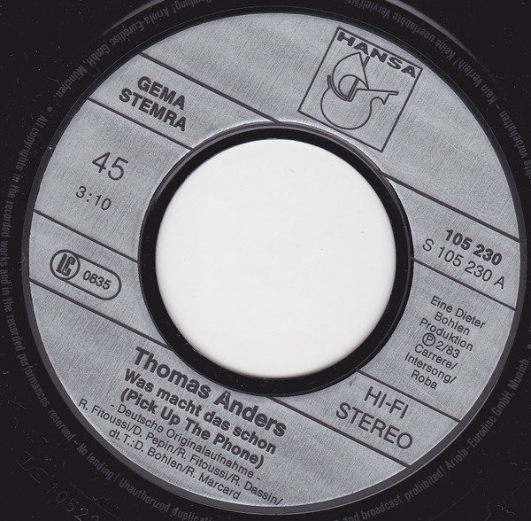 Label: Hansa - Cat#: 105 230