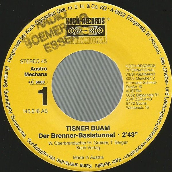 Vinyl / Tisner Buam - Der Brenner-Basistunnel