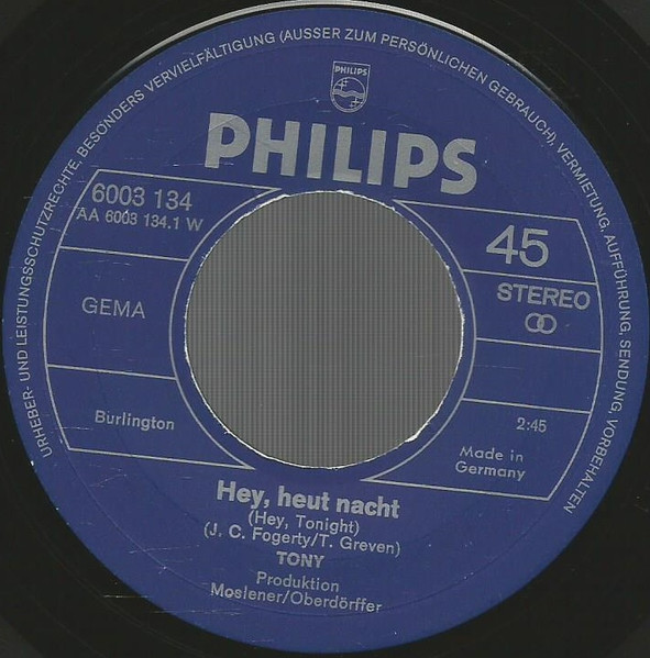 Vinyl / Tony (9) - Hey, Heut' Nacht (Hey Tonight)