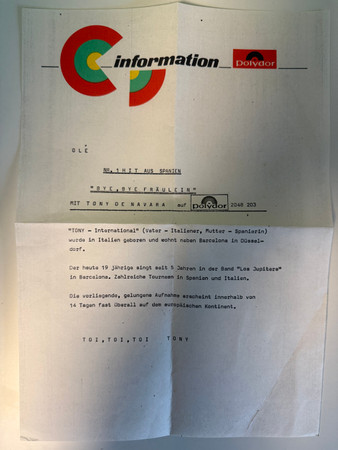 Vinyl / Tony De Navara - Bye, Bye Fräulein