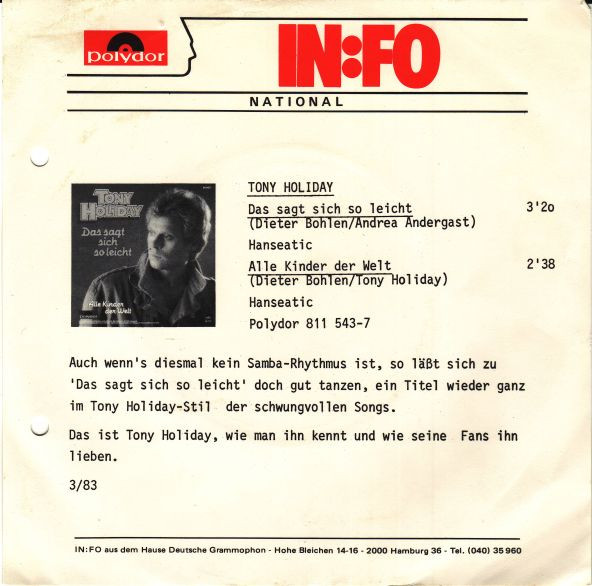 Vinyl / Tony Holiday - Das Sagt Sich So Leicht