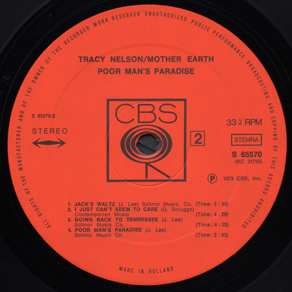 Vinyl / Tracy Nelson / Mother Earth (4) - Poor Man's Paradise