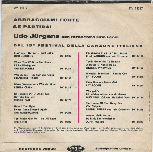 Vinyl / Udo Jürgens - Abbraciami Forte / Se Partirai