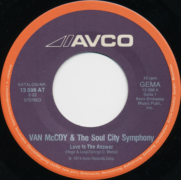 Vinyl / Van McCoy & The Soul City Symphony - Love Is The Answer / Killing Me Softly