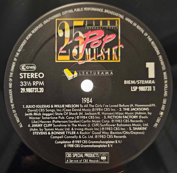 Vinyl / Various - 25 Jahre Internationale Popmusik -1984