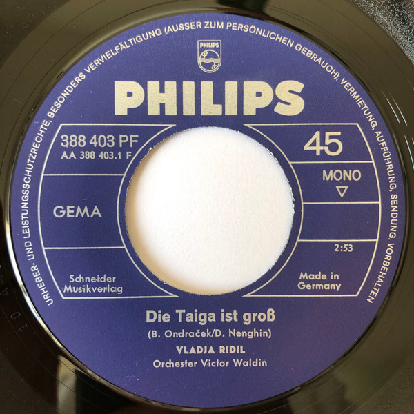 Vinyl / Vladja Ridil* - Die Taiga Ist Groß (Taiga-Blues) / Wenn Die Sonne Nicht Scheint