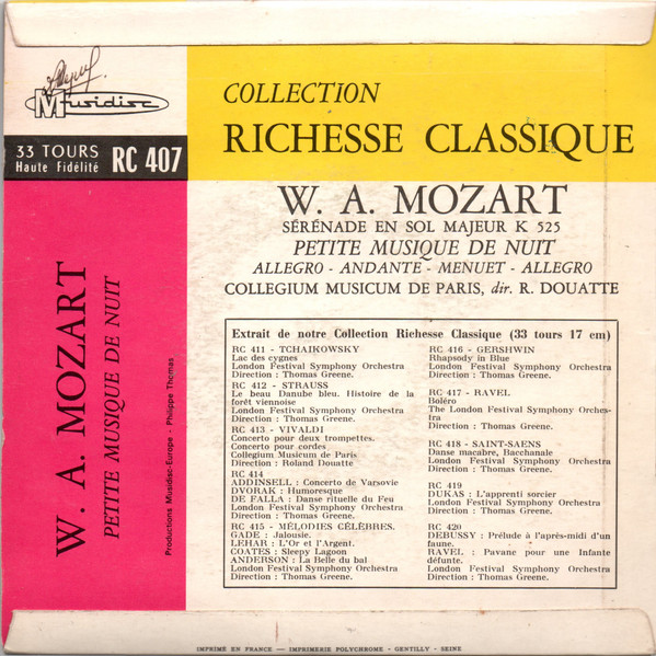 Vinyl / W.A. Mozart* - Collegium Musicum De Paris, Roland Douatte - Petite Musique De Nuit